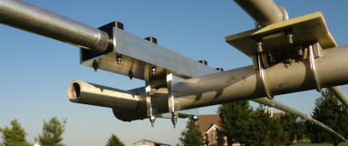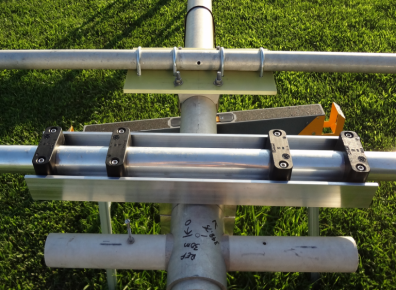 The REF and DE elements for the 17m beam were mounted to the boom using DXE saddle clamps and a G10 3/8 fiberglass epoxy board as the insulating mount.
