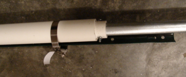 - The larger PVC size is held to the post by a pair of hose clamps.