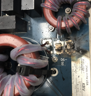 This photo courttsey of DXE when I sent the unit in for "repair." Uh, guess that's not happening... 80m 4SQ Hardening