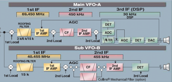- For the 2nd RX, a set of filters in the 2nd IF are selected by the control unit via firmware between 300/500 Hz (if installed), 1.0, 2.2, 6, 8 and 16 KHz. Actual widths are affected by the signal input level and the circuit details.