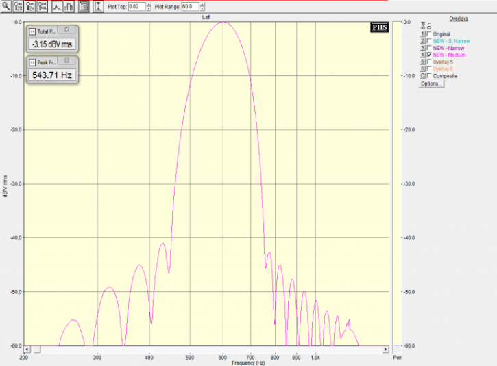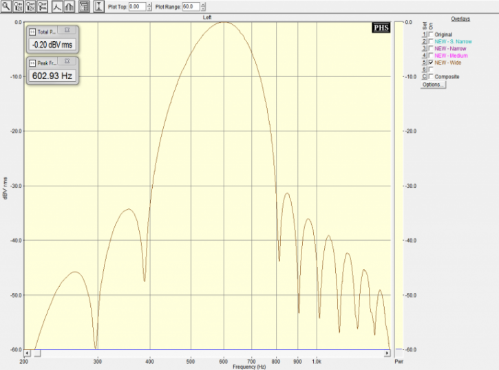 The remaining 3 choices are of a similar filter implementation, with varying bandwidths. Shown here, the "NARROW" option.