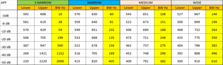 With the addition of the APF options, the filtering available can be a combination of any of these: - Standard DSP (rectangular filter shape)