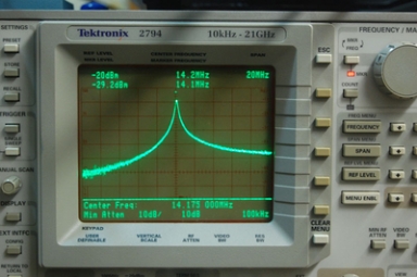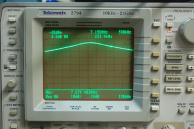 Measurements of the individual units are shown in the following plots. Thanks to Mitch Fipps, N4MF. As can be read from the screen shots, the bandwidth measured by N4MF tracks very closely to the RSGB data: 80m: 95 KHz @ -6 dB 40m: 234 KHz @ -6 dB 20m: 319 KHz @ -6 dB
