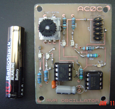 Instrumentation added is both commercial and home brew. To the right is the DVM frequency counter module. Two seperate voltage inputs provide 0-15V range. For AC signals it will display P-P. The frequency counter input can look at the oscillator module, or can be fed from a probe point in the traditional test instrument style. This board is not completed yet from a firmware standopoint. And it will be interesting to see how the counter logic works with respect to the maximum frequency capability.