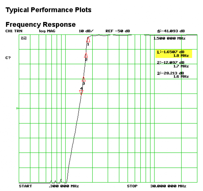 - Loss at Cutoff Frequency: Typical 1.6 dB