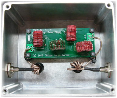 Bringing out the newest big-gun and taking aim at our local AM BC station's 1670 KHz carrier BackgroundIn a prior bench exercise, I took a look a Jack Smith K8ZOA's Z10022A high pass filter. It's designed to give maximum attenuation to the US AM broadcast band. With it's 9th order Chebyshev topology, I measured 90 dB at points here on the AC0C bench. So when I needed another HPF for the shack RX antennas, Jack was the guy I called. Around here, the strongest station is found with a 1670 KHz carrier frequency. And for some of the receiving antenna combinations, we can get some inter-modulation products that show up in the 160m band as a result. The solution is to cut down on the broadcast band signal levels enough so that the IMD products remain below the noise floor. Unfortunately in my case, that poses quite a challenge for the Z10022A which has a pretty gentle roll-off. Fortunately, Jack has the solution just for this kind of situation. The Z10023A HPF has a 7th order elliptical (also known as Cauer) design which trades off ultimate attenuation for a more rapid transition band skirt. One was ordered up and in the next week was delivered and put on the bench. I measured about 18 db of attenuation from the Z10023A at 1670 KHz. While the filter did eliminate my IMD problem, being the tinkering-type, I had asked Jack if I could fiddle with the filter a bit to push the "knee" of the filter up a bit in frequency - and thereby move the 1670 KHz carrier of concern further down the transition band.