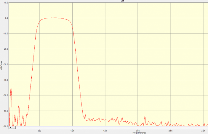 - -6 dBc bandwidth measured 544 Hz and -60 dBc BW measured 834 Hz for a shape factor of about 1.53:1.