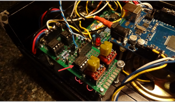 The external speaker and key line jacks were hot-glued to the PCB. The two blue buttons allow speed adjustment up/down in 1-WPM increments. A PS2 keyboard jack hangs off an attached dongle allowing full access to the keyer's menu settings - or for the sending of keyboard-based CW. The keyer has a type-ahead buffer and a lot of other slick features. It's built around the Atmel ATMega328 uP which is used in a lot of Arduino chips. The source code in C is published as well but it is a Atmel Studio based project, not an Arduino implementation. Advantages of this keyer were an assumption that the timing considerations (if any existed) were well nailed down by CW pros and that the keyer feel would be excellent. Disadvantages were the junkbox dive needed to find parts and if the code was to be modified later, my lack of experience with the Atmel Studio platform. The missing DDS function could be handled by an outboard DDS. K3NG ARDUINO KEYER