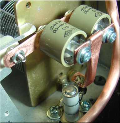 Fitting the plate chokeThe plate choke is from Ameritron. It reads about 200 uH total and is split to avoid in-band resonances. The biggest challange was trying to figure out where to put it!