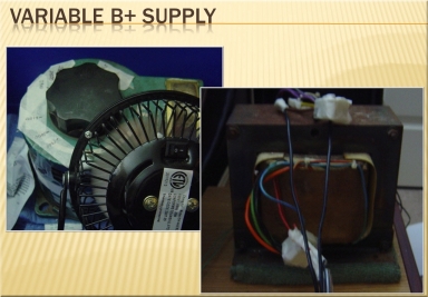 I did not have handy a 220v variac so I tied the 120v variac into one side of the power line. This allowed varying the B+ level applied to the SB200 to range from about 1800-3200v. A fan over the variac was added just for good measure. The Alpha 77ap transformer on the other hand needed no cooling. That is a MASSIVE transformer weighing about 45 lbs.