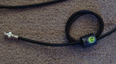 The RVM sensor cables are RG-8x with clamp-on BNC terminations as seen here. Labels on each end help keep the cables straight when testing. BUILD: Dipole Center Insulators