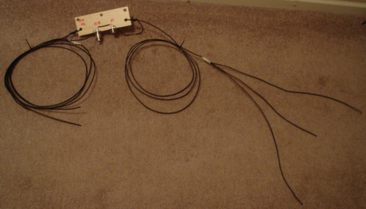 The fork-shaped capacity hat for each end is visible in the picture to the left. The resonant point of the antenna will be easily adjustable by moving these ends.