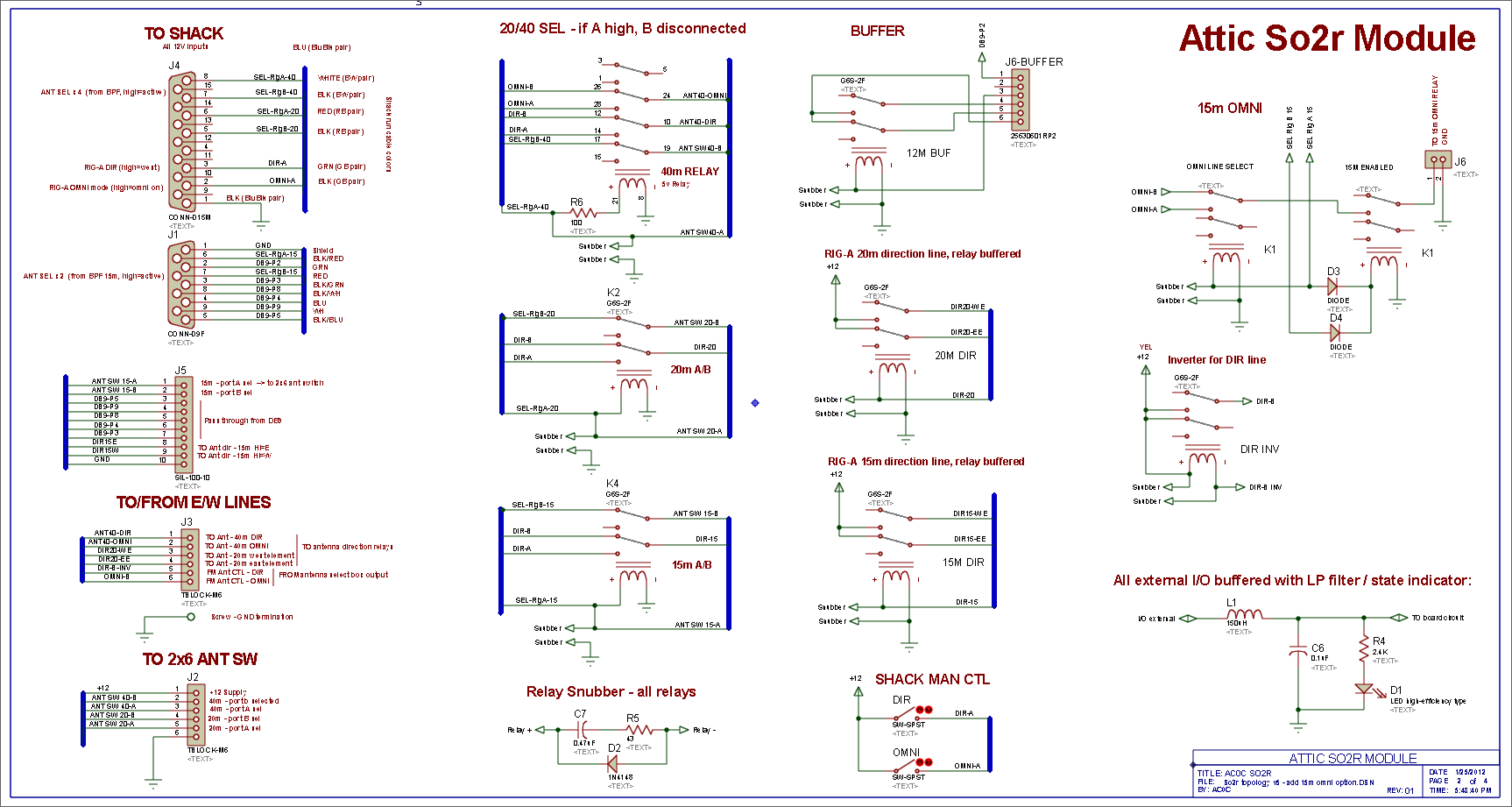 Hardware Interlocks and Line Buffering The attic So2r control board described below is pretty simple but serves a couple of critical functions. It provides an hardware-based antenna interlock function on the 15, 20m and 40m antennas with this logic: