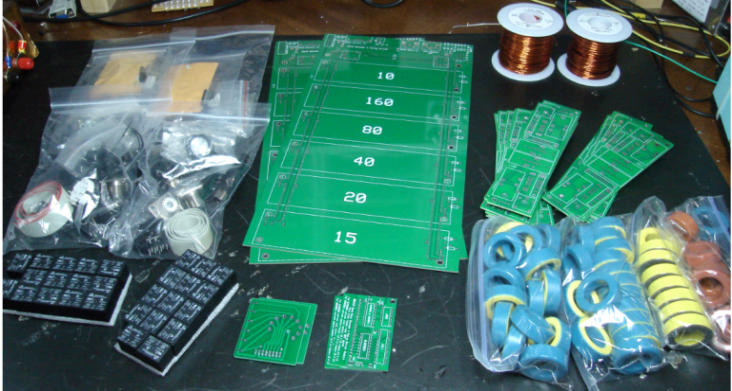 The Parts 5B4AGN sells the component kit in 3 increments - the PCB set, the hardware and the PCB parts. Everything except the case, toroids and toroid wire is contained in these initial kits. The wire was purchased from Bulk Wire. 1 lb each of 18 and 16 GA. The toroids were purchased from Diz in a kit that is listed under the W3NQN filter name on his site. The cases (not shown) are arranged via an EU vendor under 5B4AGN's coordination and will arrive later.