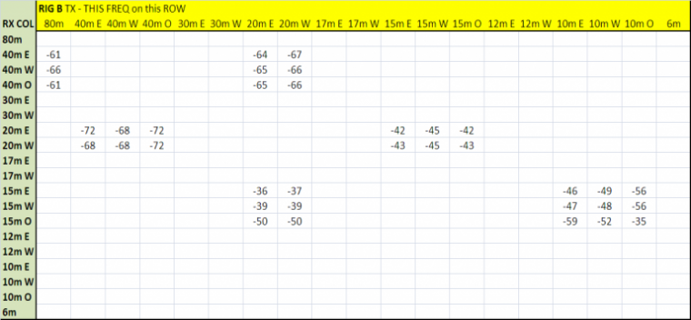 Measuring Attenuation for Adjacent Band Coupling When the Gen 5 modifications were complete, the antenna-to-antenna coupling of the various So2r adjacent band combinations were measured from the shack with the VNA. Results in the table below.