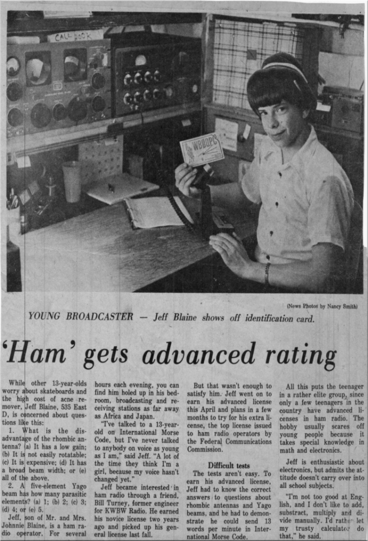 The interest in electronics continued to grow and at age 11, as part of a Boy Scouts merit badge project on electronics, I had attempted to build a small few-transistor shortwave radio sold by Radio Shack. For some reason, I could not make it work properly. My dad had a friend who lived next door to a ham radio operator and suggested he may be able to help figure out the problem. A few days later, I was in the basement located radio shack of Bill Turney, then WA0RFF. Bill ultimately helped track down a transistor which was incorrectly oriented bringing function to the Radio Shack kit. But that visit also introduced me to the world of ham radio...