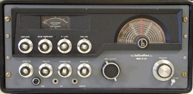 1976 - Hallicrafters HT-32 with VFO - but still without a good RX...My first Elmer Bill Turney sold me this overhauled HT-32 for $100. He had a HT-32 as his primary transmitter along with a classic 75S Collins and a home-brew 3-500z amp. The clam shell case from my HT-32 provided the matching case for his lineup and my HT-32 had a very heavy single case, as I recall. It was wonderful as a transmitter because it provided frequency coverage on all 5 bands, complete with a much needed VFO. A pair of 6146b for output power. 85 lbs of boat anchor joy... The navy mod military receiver vintage WWII Stromburg Carlson RBS-2 (or maybe RBM-5) general coverage unit with a floor mounted power supply. The receiver was better than the S20R.