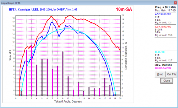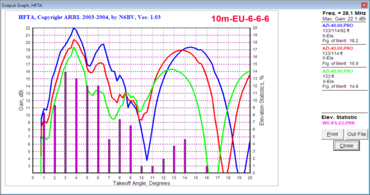 HFTA AnalysisTaking a look at what the terrain and DX arrival angle picture looks like, HFTA shows what the various combinations combiantions look like here in the case of beaming to EU.