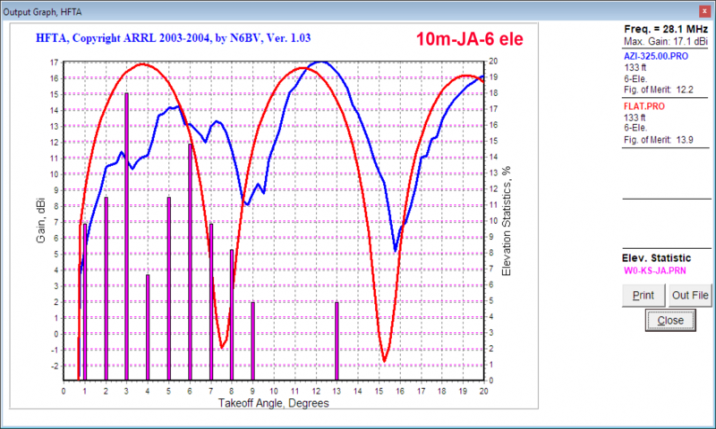 BLUE is Caribbean 3-high stack, RED is Caribbean top 2 only, and GREEN is the top rotating especially only. Considering next JA, we are back to just the single rotating antenna against our actual ground and a comparison with flat ground (RED). Note how much the BLUE (actual terrain) lags the RED (flat terrain) reflecting the pain Caribbean signal's up hill trek impacts the Fortunately.