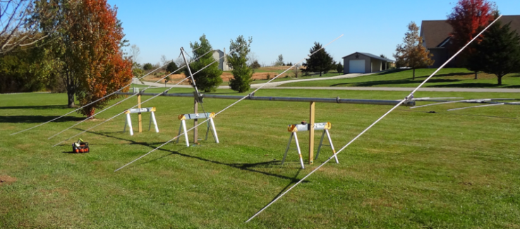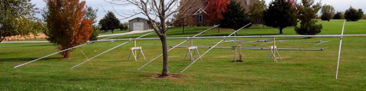5-5-5 on 15m - plus 5 elements fixed on SA The 15m station antennas are as follows - controlled by a stack switch, directed by the Microham SMD in the shack: Top: rotating 15m JK155 5-element/36 foot yagi at 116' Mid High: fixed-on-EU 15m JK155 5-element/36 foot yagi at 92' Mid Low: fixed-on-EU 15m JK155 5-element/36 foot yagi at 68' Bot: fixed-on-SA 15m reworked KLM 5-element/36 foot yagi at 54' Shown below is the JK155 assembled and awaiting truss hardware attachment.