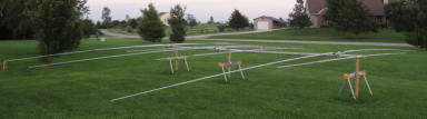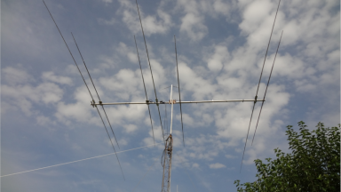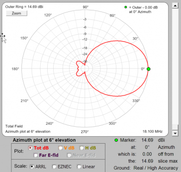 The completed beam mounted on the temporary test-tower for checkout is shown at right I started out with some Telrex beams in my bone pile and an idea that I could homebrew a 3-element 40m beam from the parts building it on the cheap. I had heard the Telrex beams were the top of the line back in the 60's and 70's but that despite a reputation for being built incredibly well there were comments on the internet that the Telrex beams (especially the 40m) would not stand up to high winds and tended to lose element tips. Sure enough with subsequent analysis running the DXE Yagi Mechanical application against the element construction, failures were predicted at speeds below 60 mph. With local wind speeds expected in the 85 mph range (in fact a wind speed that was encountered in March of 2017 and who's damage precipitated the entire tower project!), that limitation was definitely a problem. Of further concern was that all this analysis assumed aluminum used in the Telrex was equivalent to 6061 however I was not able to confirm that meaning it could be of some softer variant meaning actual failure speeds could be lower yet. A second use of the elements for a 30m beam was considered. I had always wanted a serious 30m beam as the band is a good DX band through the entire solar cycle and with most hams using wires on the band, a full size beam at height would provide a big signal advantage when chasing the rarer ones. Unfortunately the same mechanical analysis suggested element failures even in the shortened 30m length. I had been considering wind but ice loading is a problem around here as well. After some time playing with ice loading values in Yagi Mechanical, I determined that 100 mph would be a more suitable build-standard that any of these antennas I put up should meet. Especially with big antennas up on the rotor for which falling elements could damage lower antennas on the tower and generating more troubles. The 4th tower - originally earmarked for the WARC bands - would not be built due to the difficulty of clearing the trees in the area along with a very wet summer. Fortunately modeling indicated that the 30m beam would coexist fine with the 10m/40m antennas planned for the 40m tower without interference leaving 12m and 17m without a home for the moment. It looked from the same modeling analysis that 17m would play nice with the 10/30/40 beams on the same 40m tower - but 12m would not. That solved the immediate WARC antenna problems - and with the solar cycle heading down, I ignored 12m thinking it would literally be years before a beam on 12m would be needed.