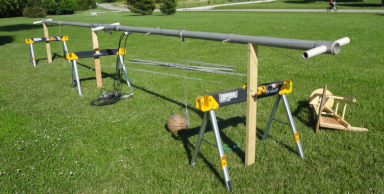 For the 30m elements, new modern-blend 6061 aluminum was bought from DXE and cut in lengths that the yagi analysis tool indicated would give a 105 mph survival. I built full-size elements as that was a simpler mechanical and subsequent tuning challenge than using loaded elements.