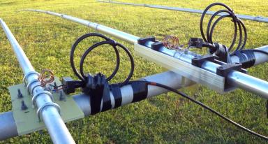 The REF and DE elements for the 17m beam were mounted to the boom using DXE saddle clamps and a G10 3/8 fiberglass epoxy board as the insulating mount.