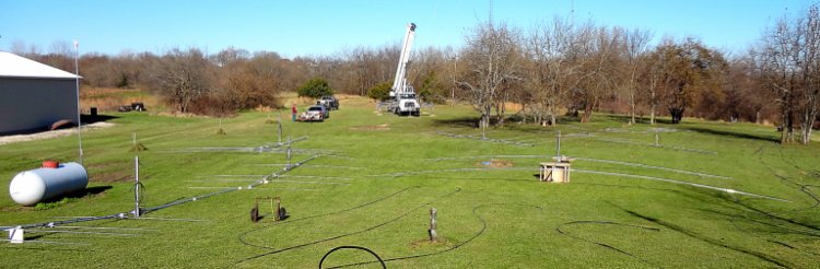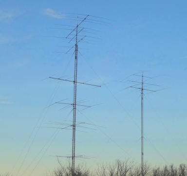 Winter was uneventful except for an ice storm. It was the first test of the integrity of the beams. The 40m tower antennas shown here with about 0.4" of radial ice. There was quite a bit of wind in that storm and with ice accumulation expected to continue another 1-2 days I took this picture (above left) thinking the next day I would be able to show what a winter disaster looked like. Fortunately the temps heated up a couple of degrees more and the forecasted ice loading never came.