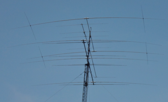 Flying Big Beam, Cranes, Riding the Mast Pipe and More There were a number of firsts for me. I had never climbed above 65' before. I had never climbed a mast pipe. I had never mounted an antenna with a crane. In retrospect it's really a miricale that the project went as smooth as it did overall! A total of 11 beams were laying around waiting for a lift up on the two towers. In the photo below are the 10, 15 and 20m JK monobanders. At right on the spool the JK 2-element 40m, and in the background the 5 reworked beams of KLM and Hygain orgin.