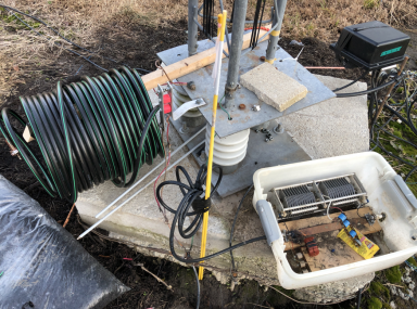 The 160m vertical is shorted at the 2x8 DXE antenna when not in use so I suspect that relay and the 325' feedline was hammered by the strike, but it remains operational now with no apparent problem. It's also possible there was some arcing in the matching net but I did not notice it. The damage to the 160m tower was minimal. A small gauge wire was used to jumper a center conductor from a SO239 over to a series matching cap and it blew - an easy fix. No other damage was evident. Note that the burning shown in this is from a prior torch use to do a field patch of wire, and not from this lightning event. There is some carbon scoring dust on the connecting wire (visible in the photo) but nothing else. Retacked that wire and the 160m antenna was back in action The matching net was intended only to serve a temporary function but it's worked so well I have never got around to fixing it. I should as it's apparently a nice shelter for mice as well as a fine matching net. A guy told me once that the meaning of "temporary" to a ham was actually "until it breaks or falls down" - I think he was right. 160m Hardening