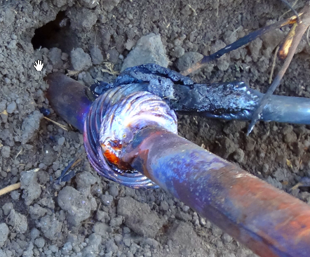 A high-temperature 15% silver brazed connection is used to bond the rod and ground wire - this is not a soldering method in the traditional sense as you need an acetylene torch to get the rod/wire hot enough to reflow the brazing rod. Cadweld and similar bonding types are superior for this application in that they would last longer and provide a fully melted blob interconnection. But with a fixed budget, I thought that a trade off of a cheaper bonding system in exchange for more ground rods would be better.