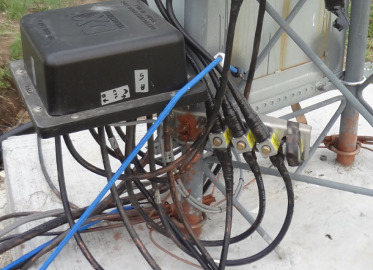 The 40m tower junction box has more lines than the 20m as it hosts the control lines for the receive antenna site as well as the 160m/80m site.