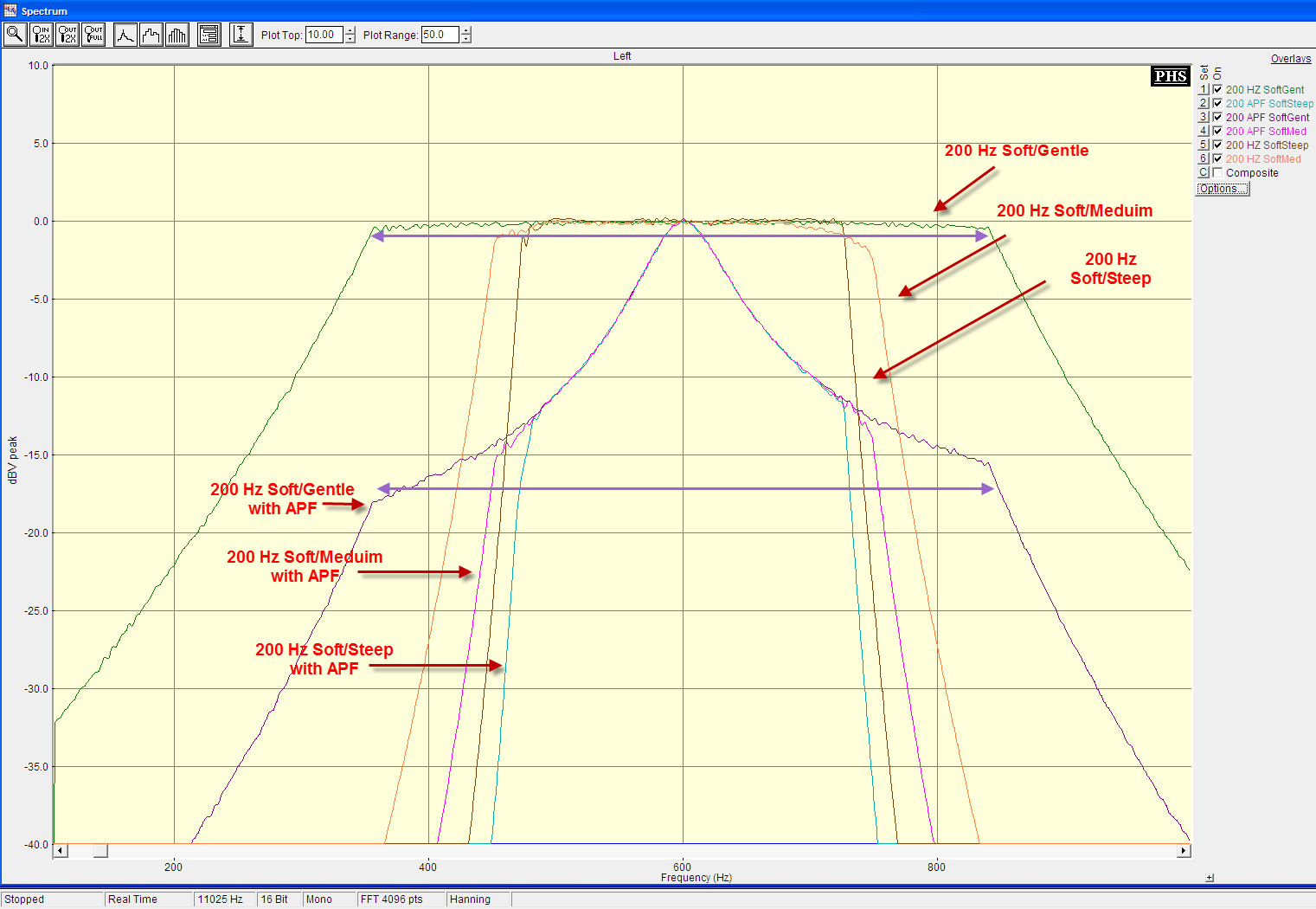- The flat top shape resumes at the -18dbc point, and continues with the same shape factor (slope) as the filter without the APF engaged