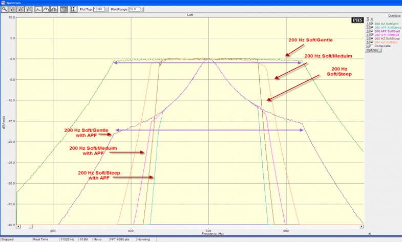 - With the APF *not* engaged, the response is flat top shaped as indicated by the top purple arrow.