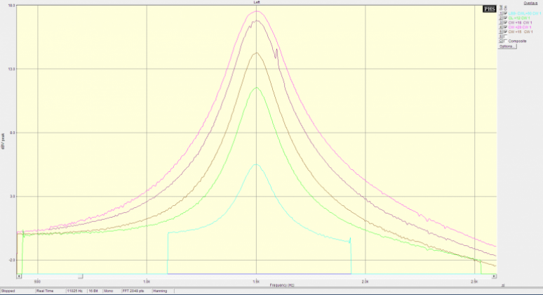 - Wide mode width: -3db points were roughly 480 Hz and 730 Hz - for an effective width of about 250 Hz.
