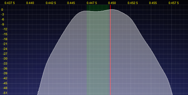 HOW YOUR RIG SEES THE WORLD  BEFOREThe Yaesu 3 KHz filter measures about 7 KHz wide at -6db. The spectrum display at the left, is taken from the 2nd IF and shows what the filter shape of the original rig's filter looks like.