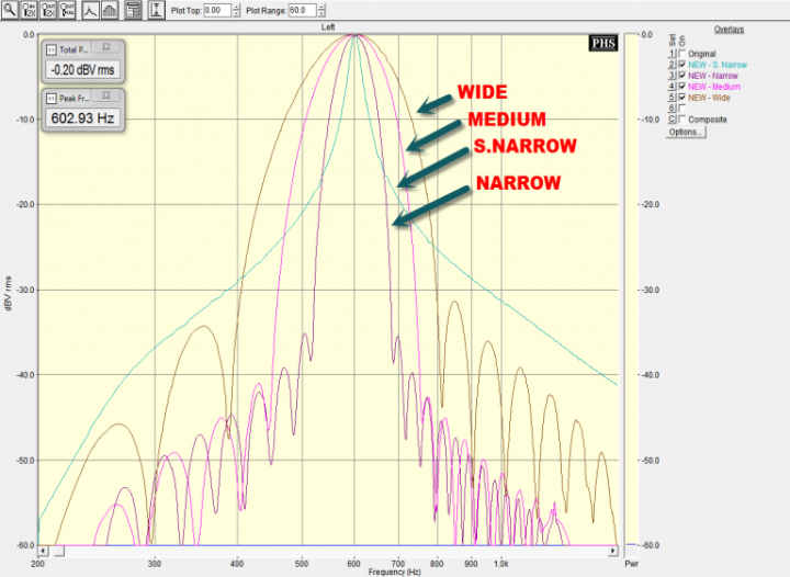 The remaining 3 choices are of a similar filter implementation, with varying bandwidths. Shown here, the "NARROW" option.