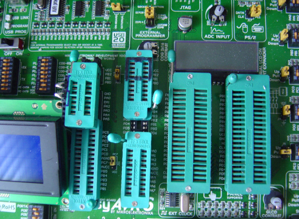 The board has pressure based sockets which are fine for casual use. But for serious work, a ZIF is needed. Unfortunately, the spacing provided does not quite work out properly given the oversized needs of the ZIF socket. So some creativity was needed to get sockets to fit.