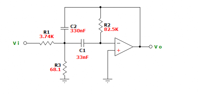 The circuit is simple as well requiring only one op-amp. As built I've added a virtual ground and fed it with a single positive +12 supply instead of the split supply assumed in the schematic.