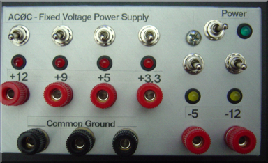 Bench power supplies I’ve been wanting to build bench supplies for a long time and this week I finally got around to it. This supply is essentailly a header for a PC power supply. The intent here is to have a lot of current at the ready, of a few of the most common fixed voltages The PC power supply has all except the +9V – which I provide via an internal 3-terminal regulator. Each line is individually switched and the LED help to provide a visual indication as to what is turned on and what is not. That also ensures that power is cut immediately and there is no "bleed donw" delay. The negative voltages are down-set from the rest of the positive voltage outputs to avoid late night accidental confusion. The power switch is a toggle that activates the entire power supply. Using the PC power supply is a great choice when ultra critical demands are not present. Most modern units feature short-circuit protection, overload, under and over voltage crowbars and automatic overload reset. They are quite robust compared to the traditional linear supply we built back in the day. The enclosure is a 5.5x3.5x2.5” radio shack aluminum box – I really like these boxes – cheap and at the ready. Holes were drilled for all the items, then I sanded the surface to give it a uniform matt finish. The labels are black on clear. And a top coat of a “fog” colored clear coat protects the labels. The slight haze tint in the paint is really great at hiding imperfections.  In this interior view, the 9V regulator is mounted on the back. The wiring is 14ga and the terminal strips serve as a stress relief. Power is fed via a DIN plug mounted at the bottom. All inputs are bypassed at this jack. The rest of the design is unremarkable.  Load test results: Post Voltage Current capability - -12v -11.85v idle 125ma max