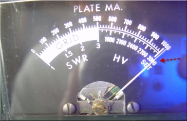 The voltage ran 3100v at idle pushing the calibrated voltmeter on the SB200 nearly to the peg. And that resulted in quite a nice showing as the LP-100 picture shows. Clearly with a larger power supply, meeting our target power (1KW @ RTTY service) will be easy to achieve.