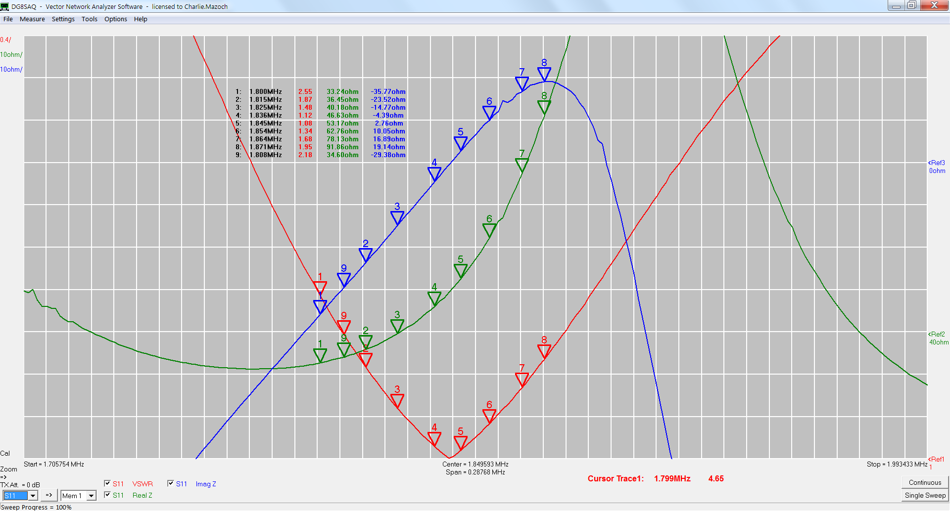 - Disconnect all radials except for the first one. Measure the X=0 frequency. This frequency serves as the target which all other radials will be trimmed to.