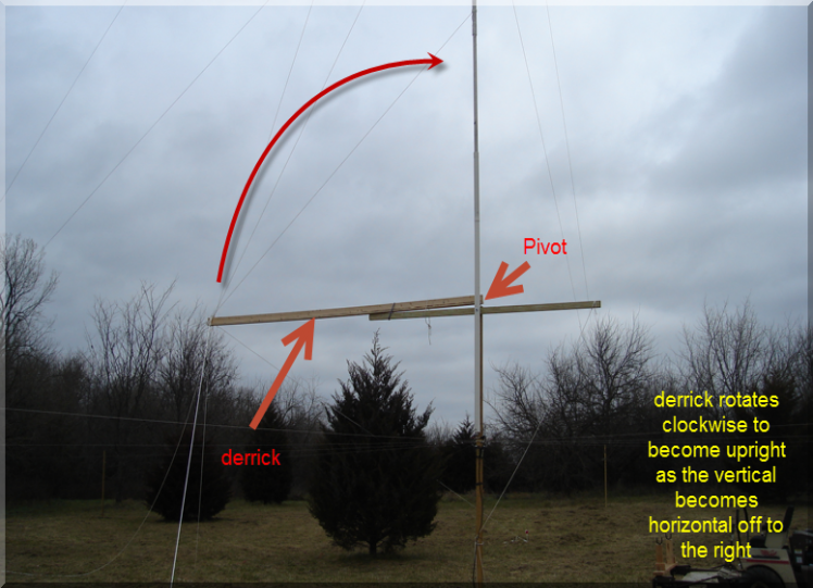 Lowering and Raising the Vertical The vertical can be lowered by one man (and a garden tractor) via a derrick arrangement.