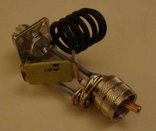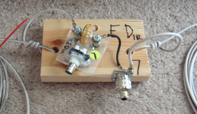 Dry wood is a FB insulator and that's what I used for this build. The board provides a good mounting place for the sensor, the SO239, strain reliefs, a mounting hole - and later, terminals for the hairpin match. Shown here is a completed DE board, ready for use.