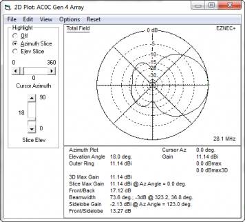 The stand alone model for the 2-element, based on a 30 inch spacing and about 154 degree phase shift. Reference model, AZ and ELEV plots here: