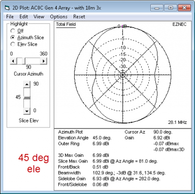 N-S DIPOLE azimuth plot - 45 degree For the short skip...