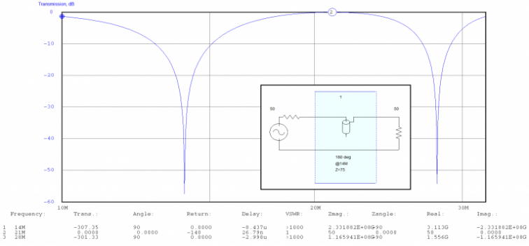 Construction is unremarkable save a facility for series stub connection. The models predicted little interaction with 10 or 20m antennas but in the event that becomes an issue, the shorting plug (shown, left) would be replaced by a stub. A 20m and 10m notch would be provided by a half-wave open series stub with the plot shown in the graph below. Of course, traditional shorting type stubs can be fixed to the drive point as well.