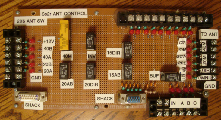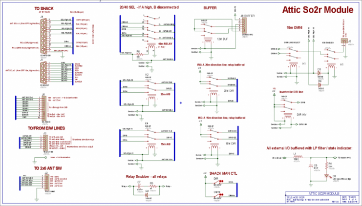Hardware Interlocks and Line Buffering The attic So2r control board described below is pretty simple but serves a couple of critical functions. It provides an hardware-based antenna interlock function on the 15, 20m and 40m antennas with this logic: