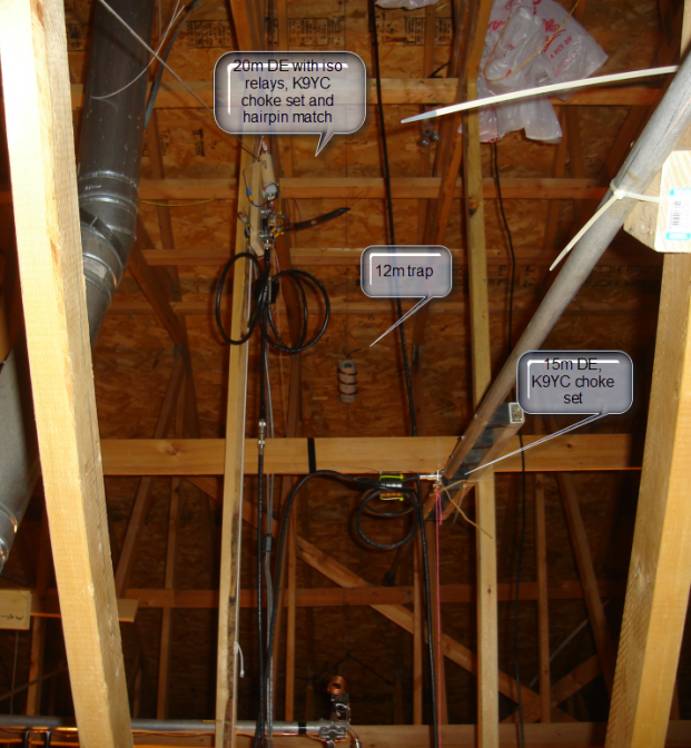 This is the 4th generation of attic antennas here at the AC0C QTH. And this one is by far the most complex I've attempted. The original design concept and build are explained below, and in the presentation PDF at the link below. Download a complete presentation on the antenna project (5Mb) HERE