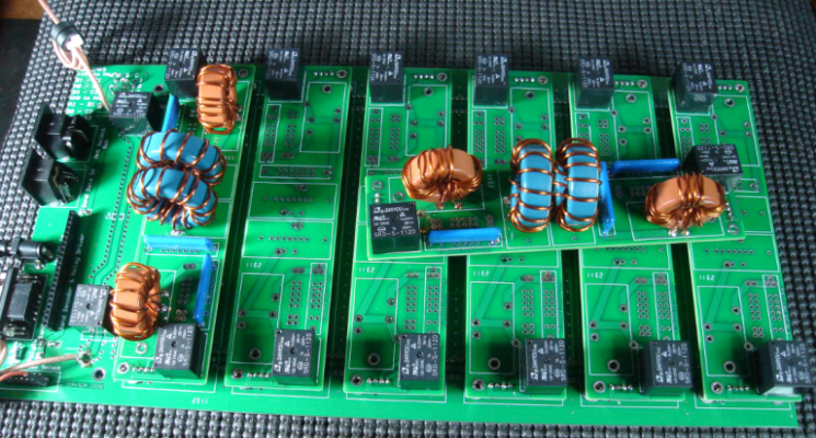 The Build The mother board and the individual filter boards are prepared first.